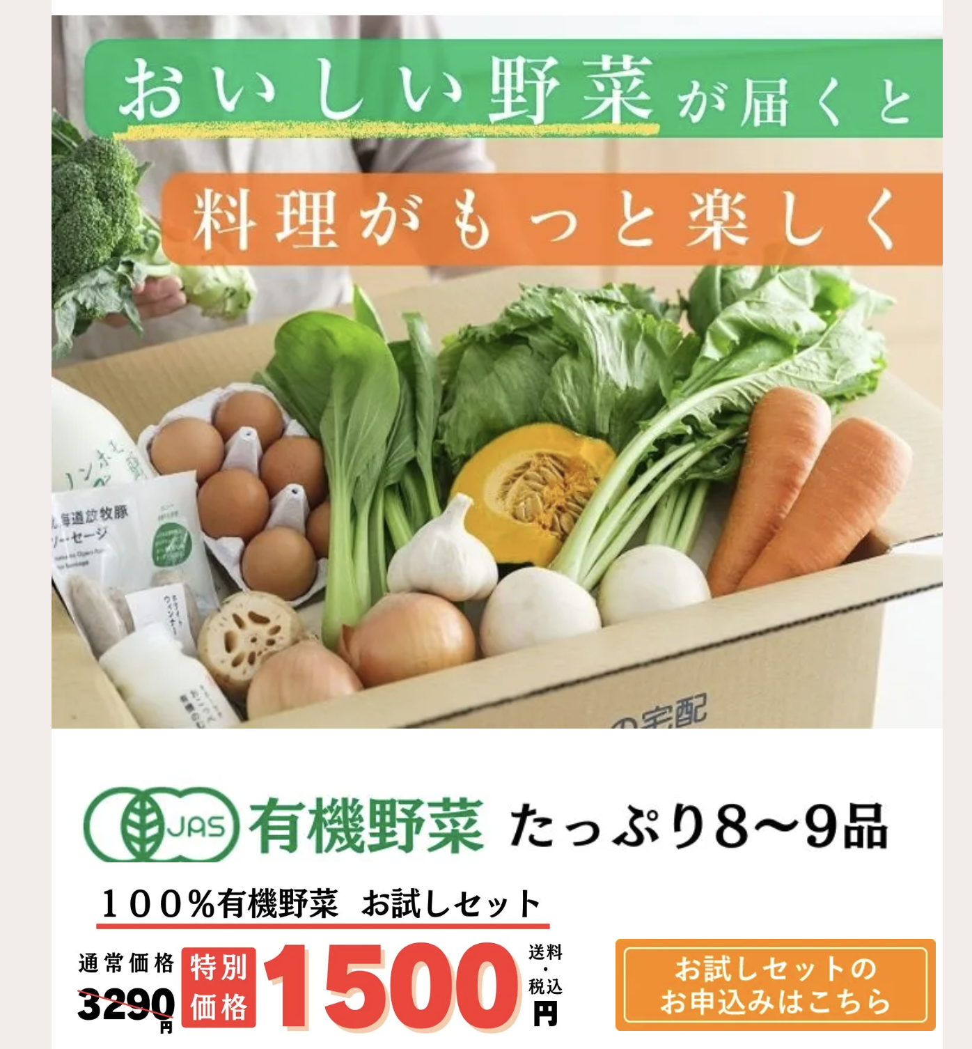 「ビオ・マルシェの宅配」は、有機JAS認証を中心としたオーガニック食材を定期的に届けてくれる宅配サービスです。特に初めての方に向けた「お試しセット」は、旬の有機野菜をバランスよく詰め合わせた内容で、味・鮮度・使いやすさを気軽に体験できます。