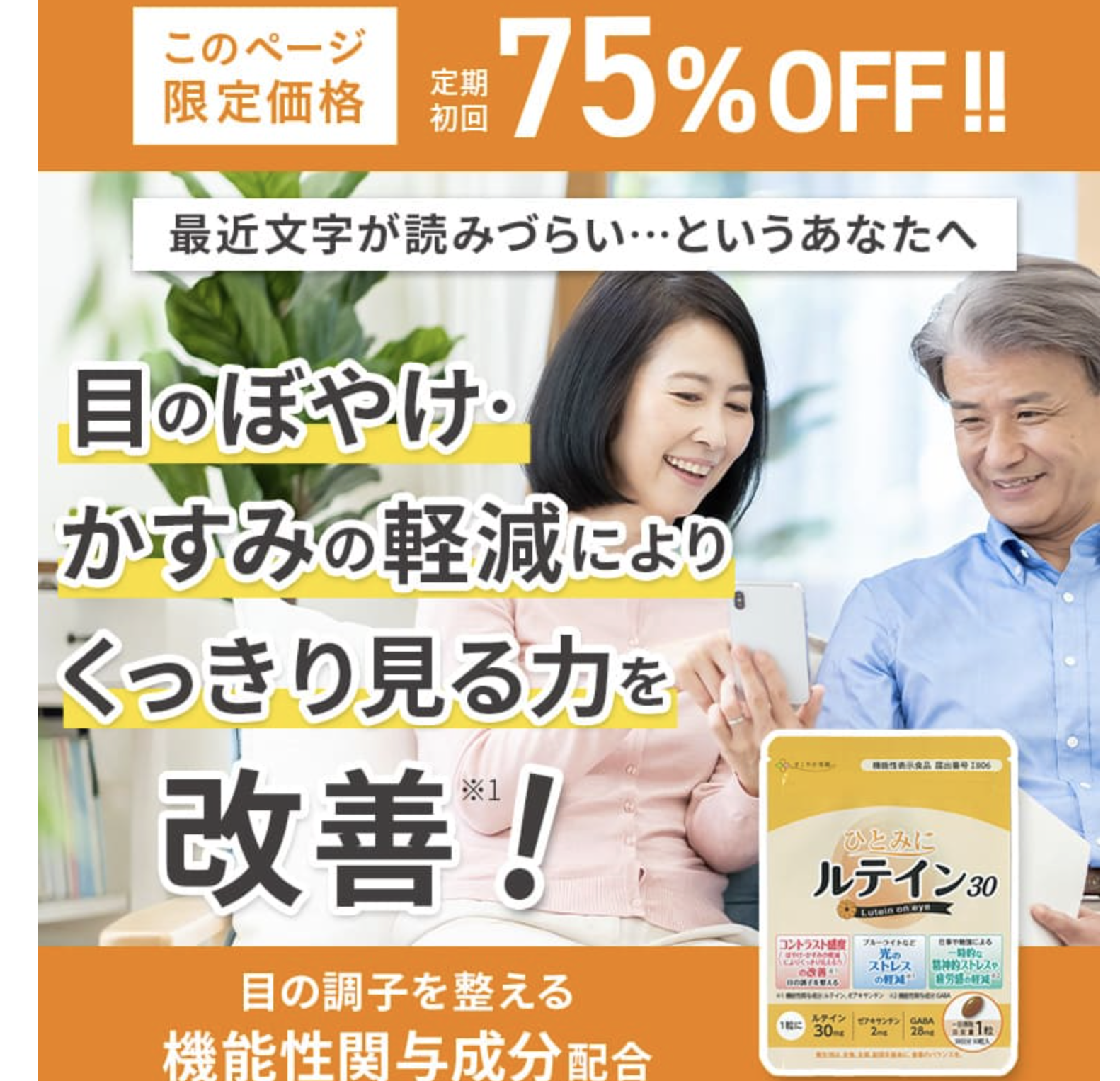 「ひとみにルテイン30」は、現代人の生活環境に寄り添い、目の健康維持をサポートするために作られたサプリメントです。光刺激の多い生活環境、年齢による変化、食生活の偏りなど、さまざまな要因で不足しがちなルテインを手軽に補える点が大きな魅力です。