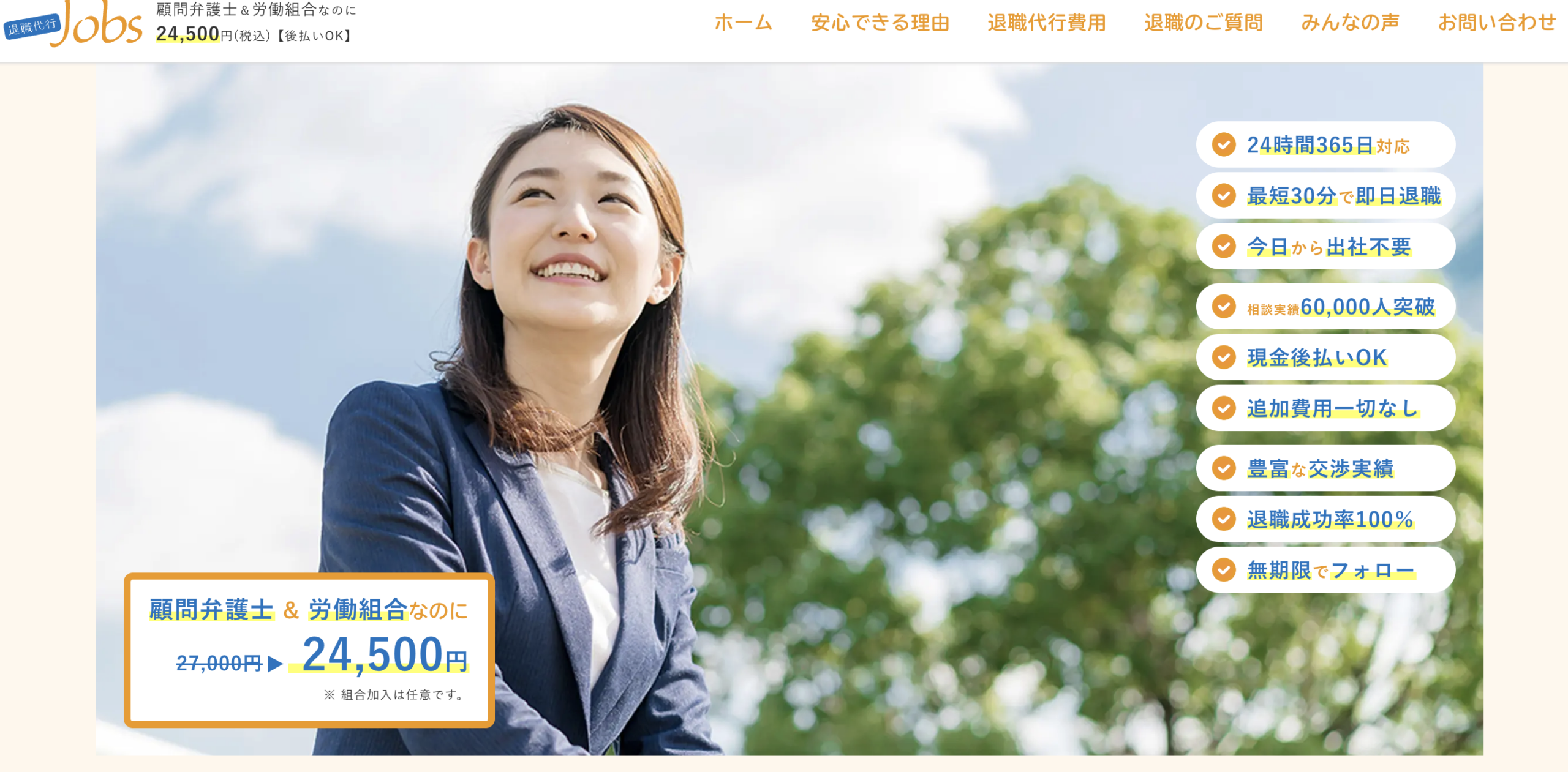 退職代行Jobsは、サービス内容と料金が明確に示されています。