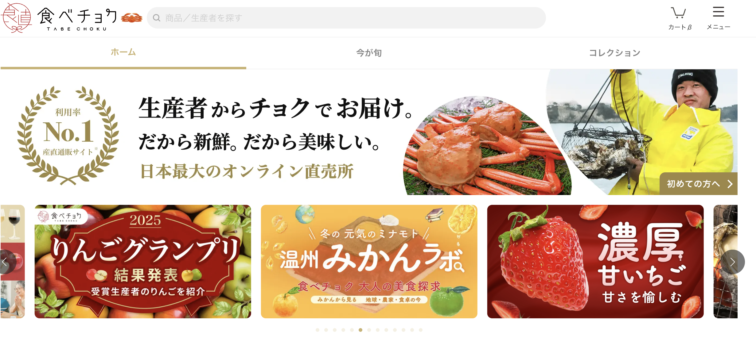 食べチョクは生産者ごとの出品形式のため、